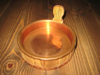 Pen lita skål i kobber og tre 60 tallet